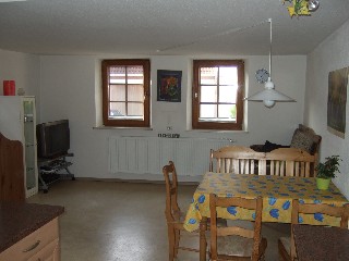 Im gleichen Raum der Fernseher, mit vielen europäischen und anderen Sendern, sofern sie nicht verschlüsselt sind (Astra Digital), DVD-Player, bequemer Couch.